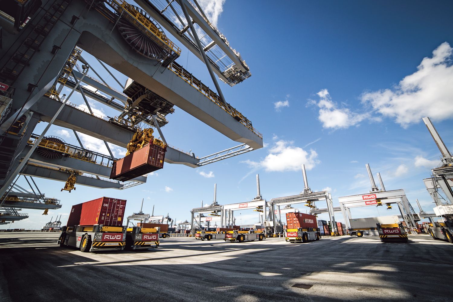 Het is zomer. De zon schijnt over het nieuwe land van de Tweede Maasvlakte. Elf enorme grijze kranen torenen hoog boven een asfaltvlakte uit. Verderop worden containers uit een binnenvaartschip getakeld. “Vandaag schijnt de zon, maar het kan hier ook behoorlijk spoken”, zegt Niels Dekker, Public Affairs & Communications Manager bij RWG. Hij zit in een ruime vergaderkamer in een gloednieuw kantoorgebouw en kijkt vanuit zijn stoel uit over het water. “Er is hier nauwelijks beschutting, dus weer en wind hebben vrij spel. Maar ook op een zonnige dag als deze merk je dat we hier midden op zee zitten: het licht wordt aan alle kanten weerkaatst.”