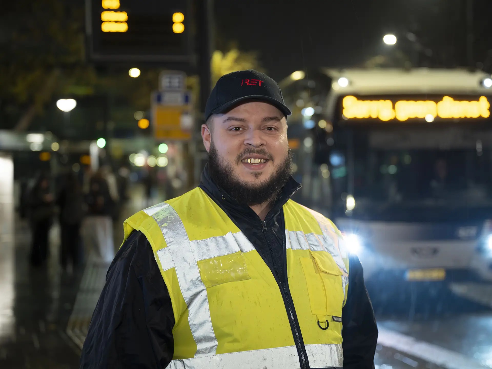 Hoe hij wakker blijft? “Koffie, Red Bull, muziek. En meezingen. Hard.” En waarom het belangrijk is dat Rotterdam de Nachtbus terug heeft? “Omdat een veilige stad ook betekent dat je veilig thuis kúnt komen. De Nachtbus is geen luxe. Het is een basisvoorziening voor een stad die nooit slaapt.”
